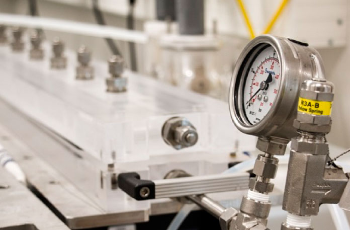 Il cuore del sistema di nanofiltrazione è rappresentato dal flussometro di massa Coriolis di Bronkhorst per controllare il processo. Questo utilizza un flussometro Coriolis, in quanto può misurare anche la densità che è importante in caso di soluzioni zuccherine. Il flussometro è posizionato sul lato pulito del processo, pertanto dietro alla membrana dove avviene il flusso permeabile (il flusso del prodotto purificato). Il grado di separazione della membrana può essere influenzato sia dalla velocità del flusso, sia dalla pressione. E così, un flussometro Coriolis con un’ampia gamma rappresenta l’opzione migliore per ricoprire una grande quantità di test.
