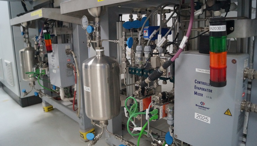 I gas di scarico dei motori contengono anche H2O evaporata. A tal fine, viene utilizzato il sistema CEM (Controlled Evaporation Mixer) Bronkhorst. Tutti i regolatori di portata, il regolatore di pressione e il sistema CEM sono collegati attraverso protocollo digitale proprietario Flowbus ad un computer permettendo di monitorare costantemente tutte le variabili di processo.