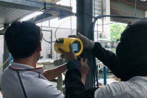 Data l’elevata temperatura dell’ambiente circostante abbiamo consigliato anche il montaggio remoto del trasmettitore. L’alloggiamento con sensore montato con grado di protezione IP67 non ha componenti elettronici sensibili incorporati ed è semplicemente una junction box destinata a collegare i cavi del sensore al cavo remoto. L’alloggiamento del trasmettitore ST80, sempre con grado di protezione IP67, ospita tutte le componenti elettroniche ed è stato montato in remoto a 3 metri di distanza, a livello degli occhi, dove si può accedere agevolmente e i dati del flussometro possono essere facilmente letti dall’operatore sul display LCD digitale con capacità grafica.
