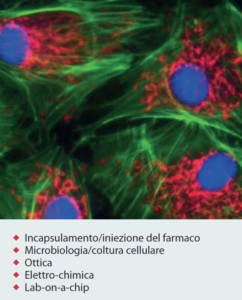 Le testine di stampa a getto d’inchiostro e i lab-on-chip (LOC) sono stati i primi esponenti della microfluidica, che prevede la presenza di liquidi all’interno di canali di diametro dell’ordine del micron. I dispositivi microfluidici sono realizzati tramite processi litografici, ma non solo, che trovano origine nella produzione di circuiti integrati.