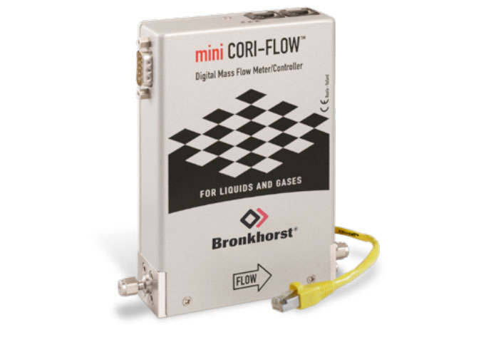 Il misuratore di portata Çoriolis di Bronkhorst misura la portata dei liquidi monitorandone congiuntamente temperatura e densità. Una portata tipica è compresa tra 50 e 100 microlitri al minuto. Per la misurazione era richiesta un’accuratezza inferiore al 10% e con il misuratore di portata massico scelto è possibile ottenere una precisione dell’1%. Il dispositivo è dotato di una valvola per il controllo della pompa peristaltica, nel caso in cui la richiesta di controllo della portata dovesse verificarsi in una fase successiva. La comunicazione con il PLC è possibile tramite un protocollo analogico da 4-20 mA o un protocollo Profinet digitale.