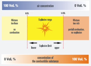 La domanda di oggi verte su questo argomento. Perché il gas ha un odore se è inodore per natura? Ed è questo il punto in cui entra in gioco l’odorizzazione del gas. L’odorizzazione del gas naturale funge da “agente di avvertimento” in caso di perdite. L’idea di base è che le persone possano percepire il gas in anticipo, perché se è presente troppo gas, questo può essere esplosivo. Come indicato nella figura, il limite inferiore di esplosività (LEL, Lower Explosive Limit) e il limite superiore di esplosività (UEL, Upper Explosive Limit) sono di fondamentale importanza. Se la concentrazione della sostanza combustibile presente nell’aria è troppo bassa (< LEL), non avverrà nessuna combustione. Se la miscela è troppo ricca (> UEL), nell’aria è presente una grande quantità di gas e avverrà solo una combustione parziale. I gas diventano pericolosi nell’intervallo tra LEL e UEL. Pertanto, è estremamente importante che le persone nelle vicinanze avvertano l’odore del gas in tempo, prima che la concentrazione sia troppo alta e superi il LEL. Come risultato, nelle norme di sicurezza è indicato che il gas naturale deve essere rilevabile a un livello di concentrazione del 20% del LEL e questo si ottiene mediante l’odorizzazione. È superfluo specificare che l’odore usato nel gas non è dannoso per la salute umana.