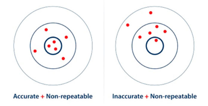 La ripetibilità consiste nel produrre lo stesso risultato nelle stesse condizioni. In altre parole, un misuratore di portata dovrebbe produrre le stesse letture quando viene utilizzato nelle stesse variabili e condizioni. Anche questo è espresso come percentuale ±. Mentre l’accuratezza di solito è sotto i riflettori nel mondo della misurazione, la ripetibilità è il fondamento su cui poggia l’accuratezza. Si può avere un’alta ripetibilità senza un’alta precisione, ma non si può avere un’alta precisione senza un’alta ripetibilità. Non è utile se il misuratore di portata è altamente accurato solo una volta ogni tanto. Se i tuoi dati sono inaffidabili, se ottieni numeri diversi nelle stesse circostanze e impostazioni, non c’è modo che quei numeri possano essere tutti accurati.