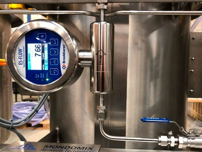 Misuratore di portata ultrasonico ES-FLOW in un impianto Haas Mondomix per la produzione dolciaria