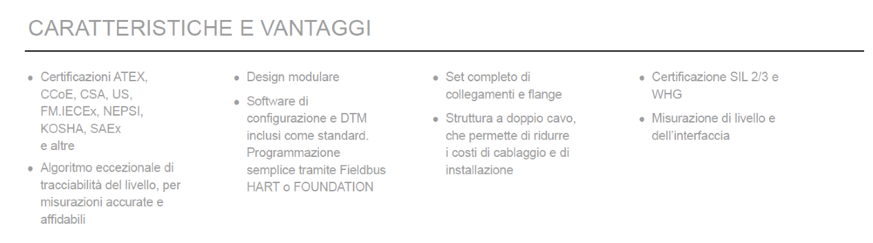 Caratteristiche del trasmettitore di livello SmartLine